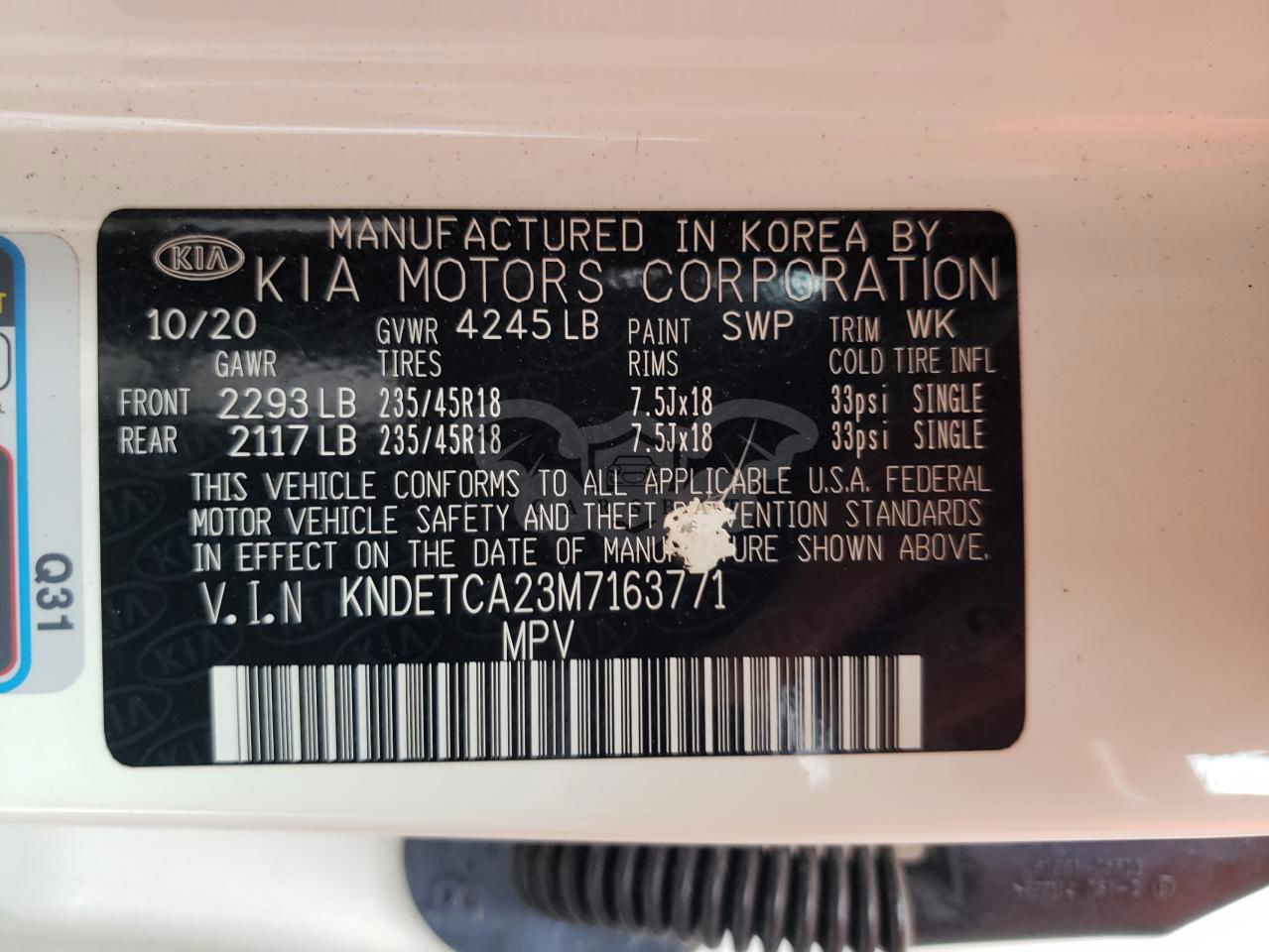 • VIN: KNDETCA23M7163771