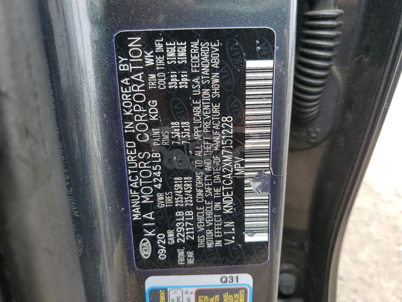 • VIN: KNDETCA2XM7151228