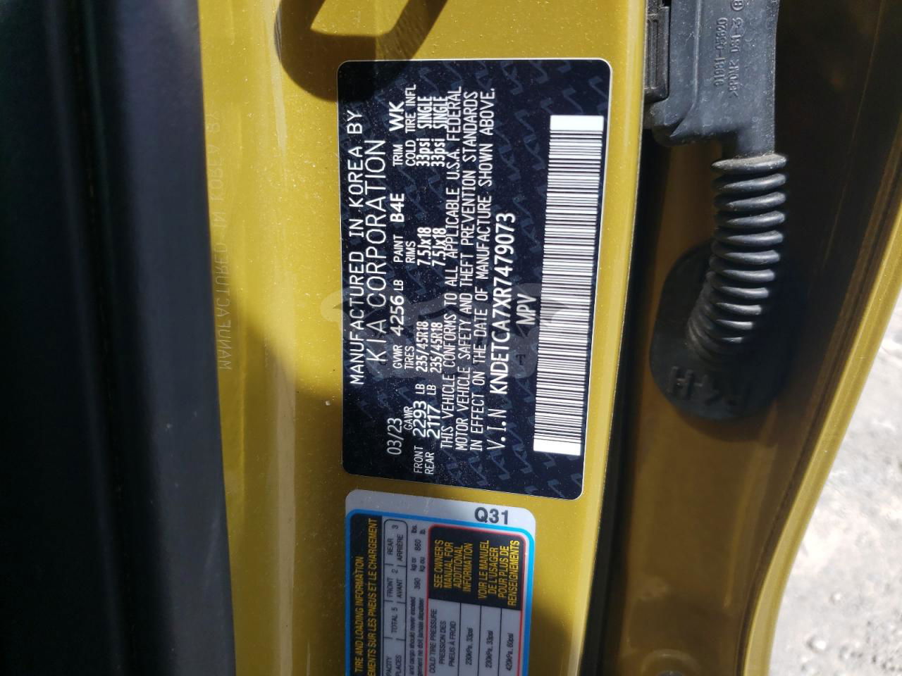 • VIN: KNDETCA7XR7479073