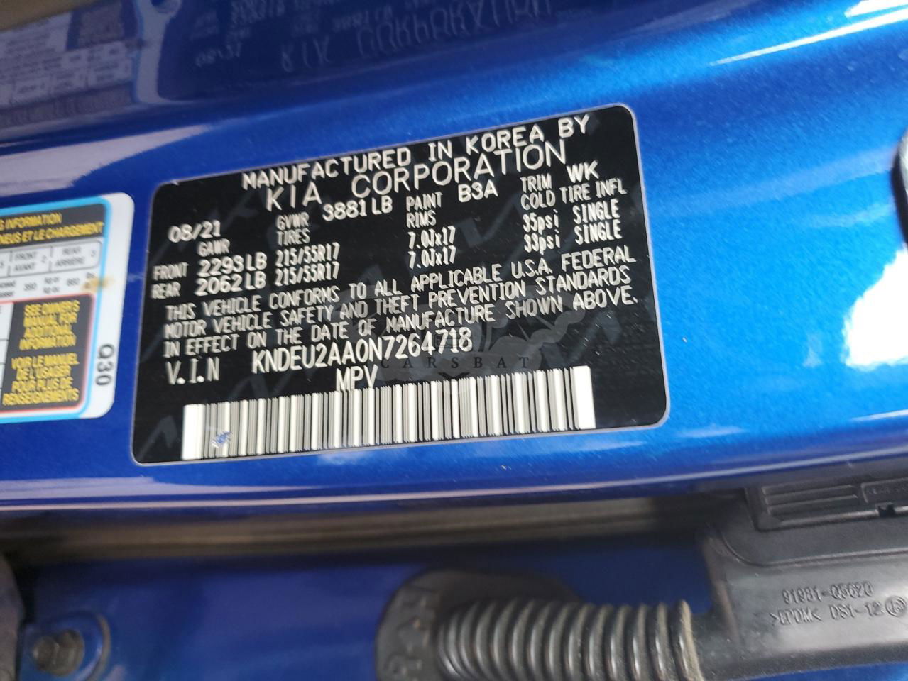 • VIN: KNDEU2AA0N7264718
