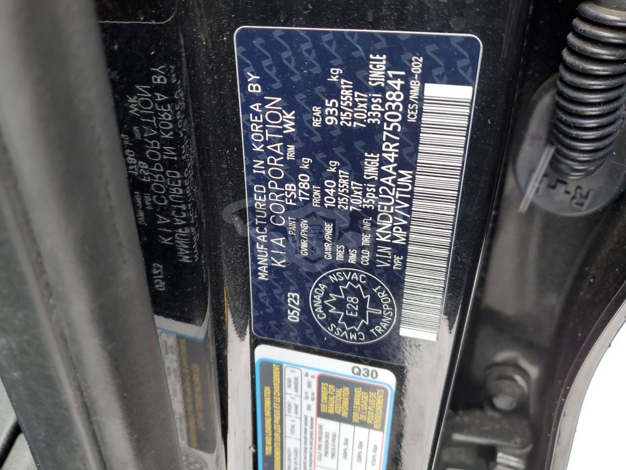 • VIN: KNDEU2AA4R7503841
