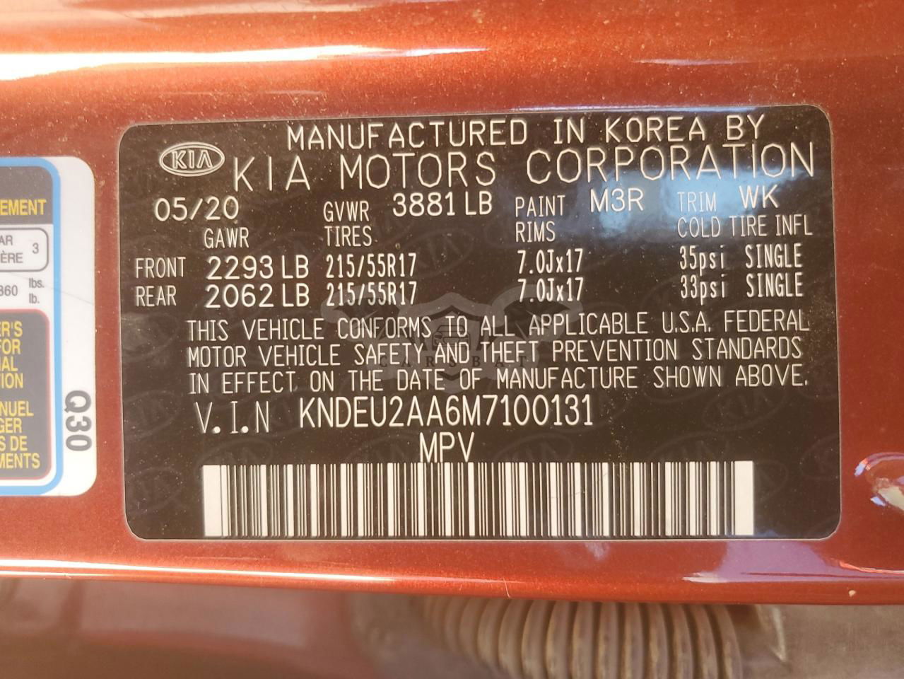 • VIN: KNDEU2AA6M7100131