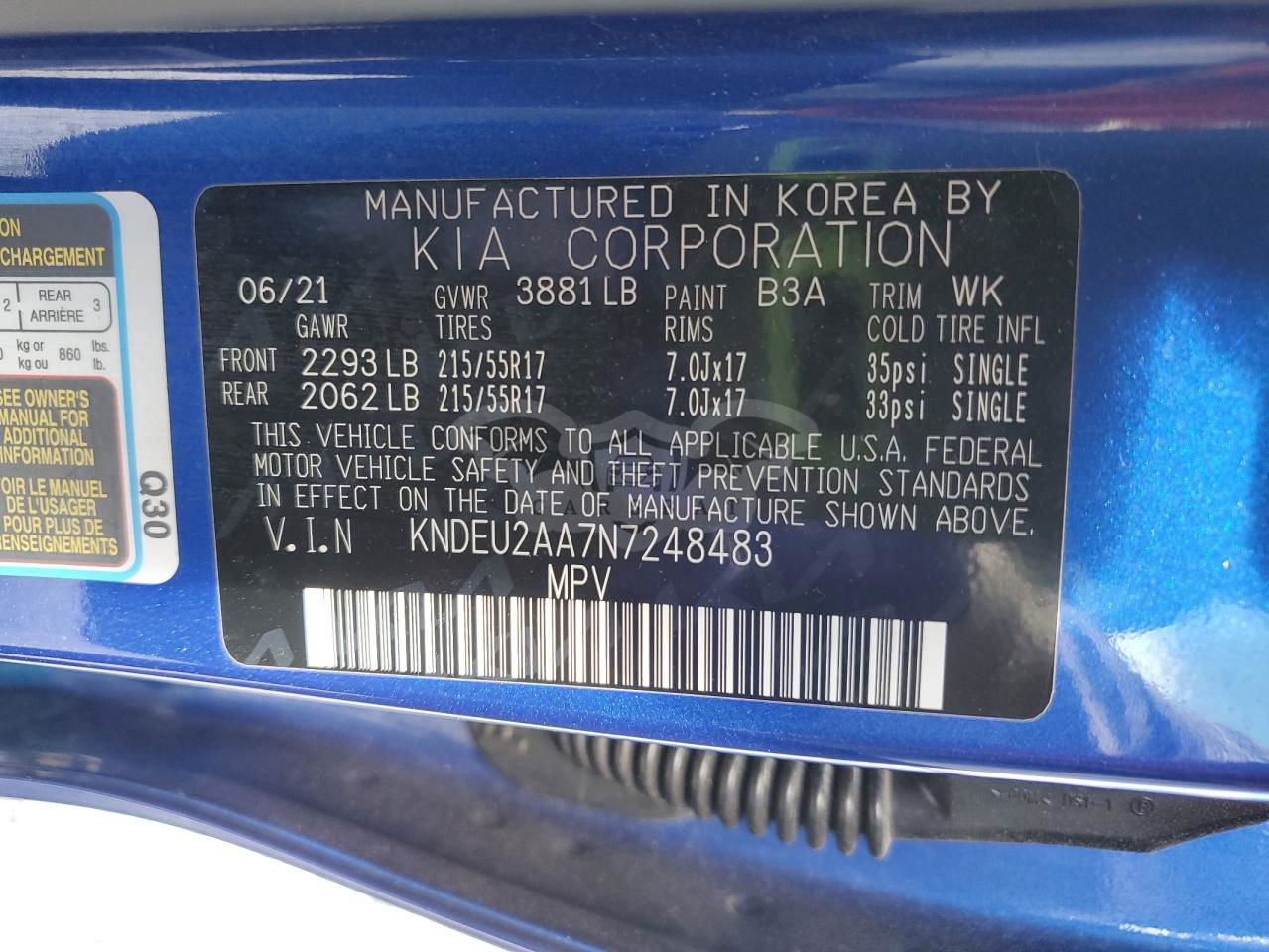 • VIN: KNDEU2AA7N7248483