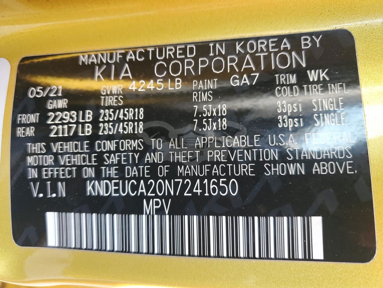 • VIN: KNDEUCA20N7241650