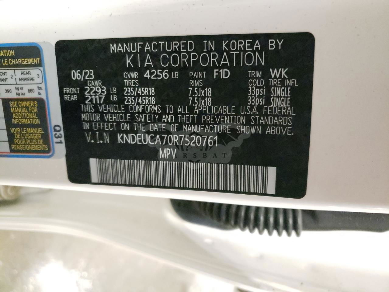 • VIN: KNDEUCA70R7520761
