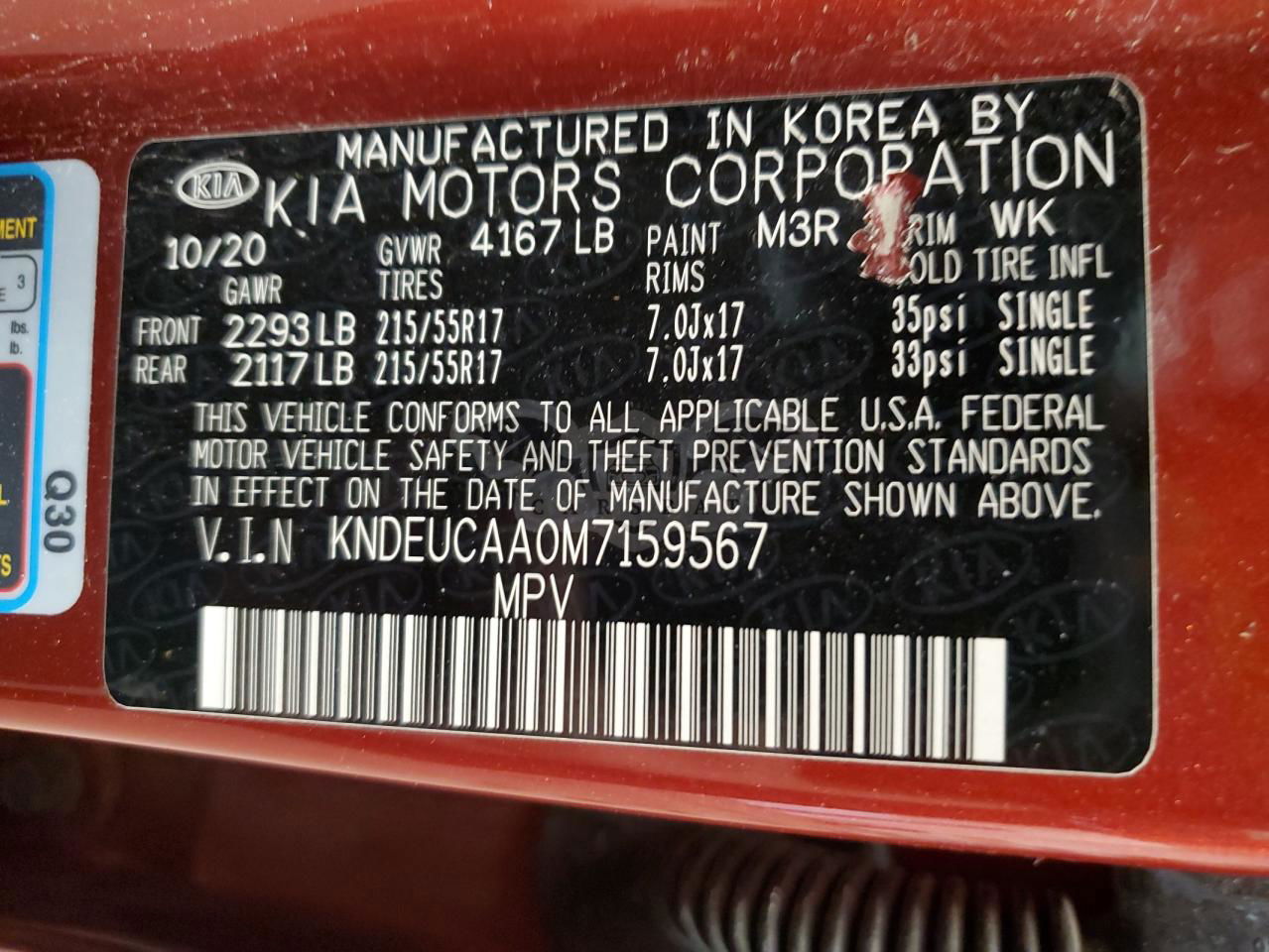 • VIN: KNDEUCAA0M7159567