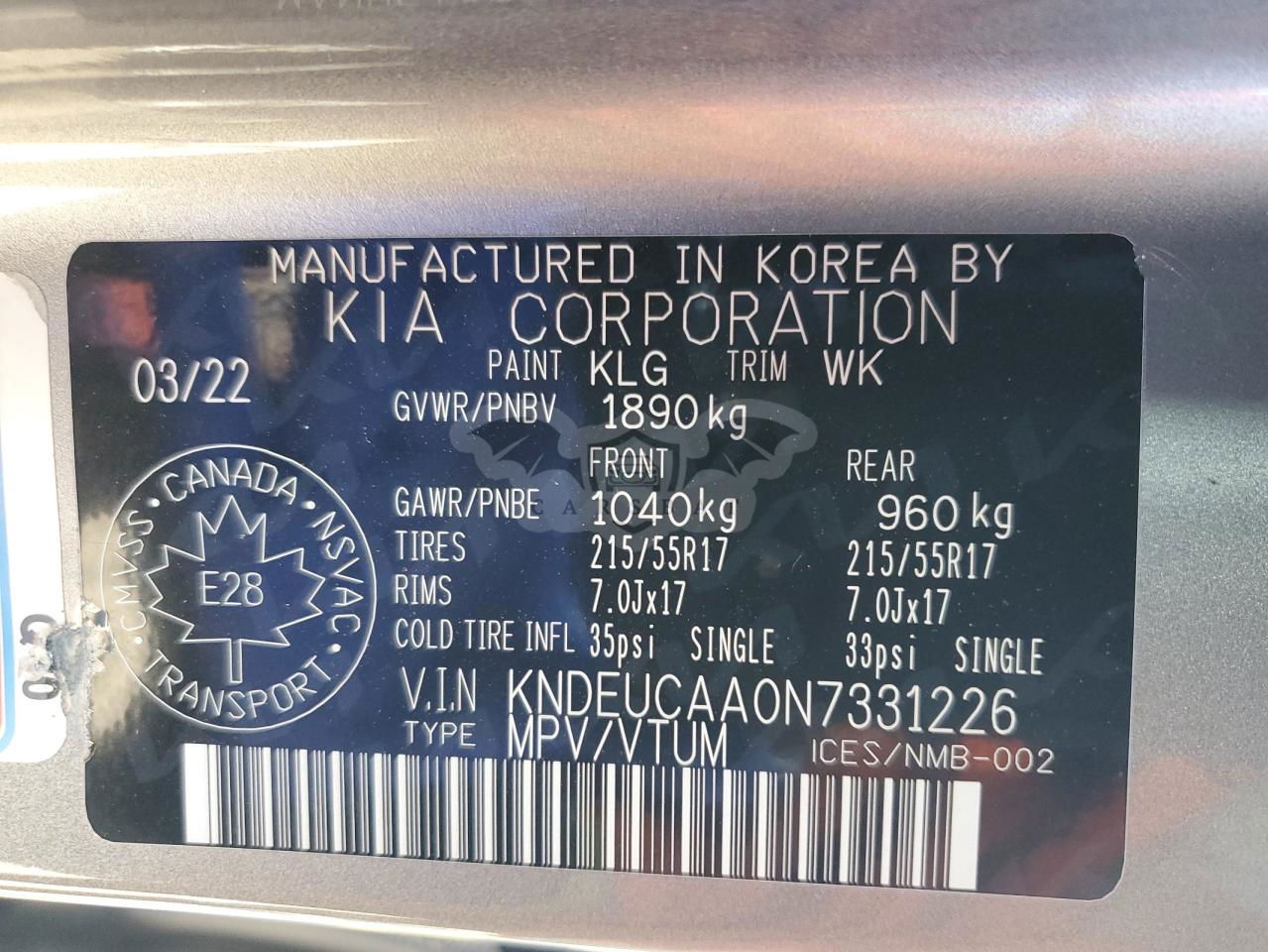 • VIN: KNDEUCAA0N7331226