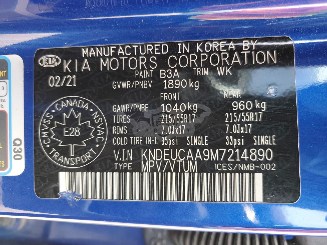 • VIN: KNDEUCAA9M7214890