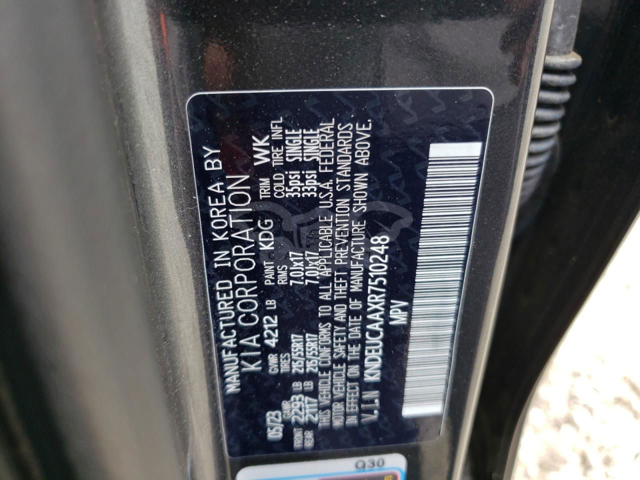 • VIN: KNDEUCAAXR7510248