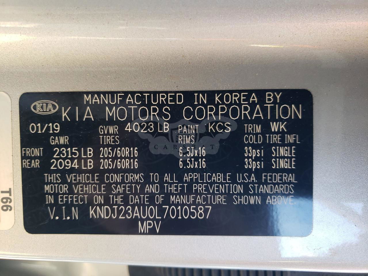 • VIN: KNDJ23AU0L7010587