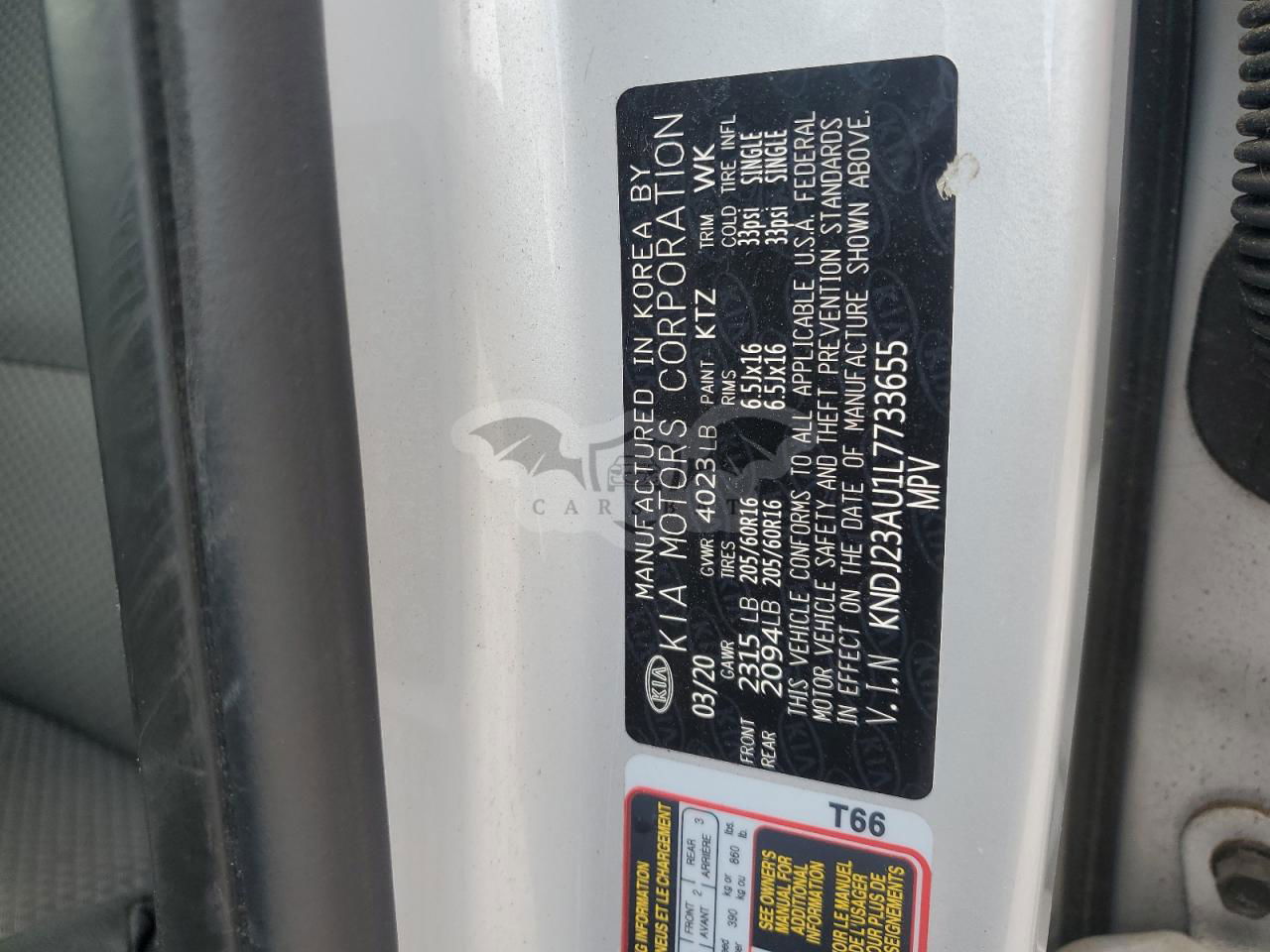 • VIN: KNDJ23AU1L7733655