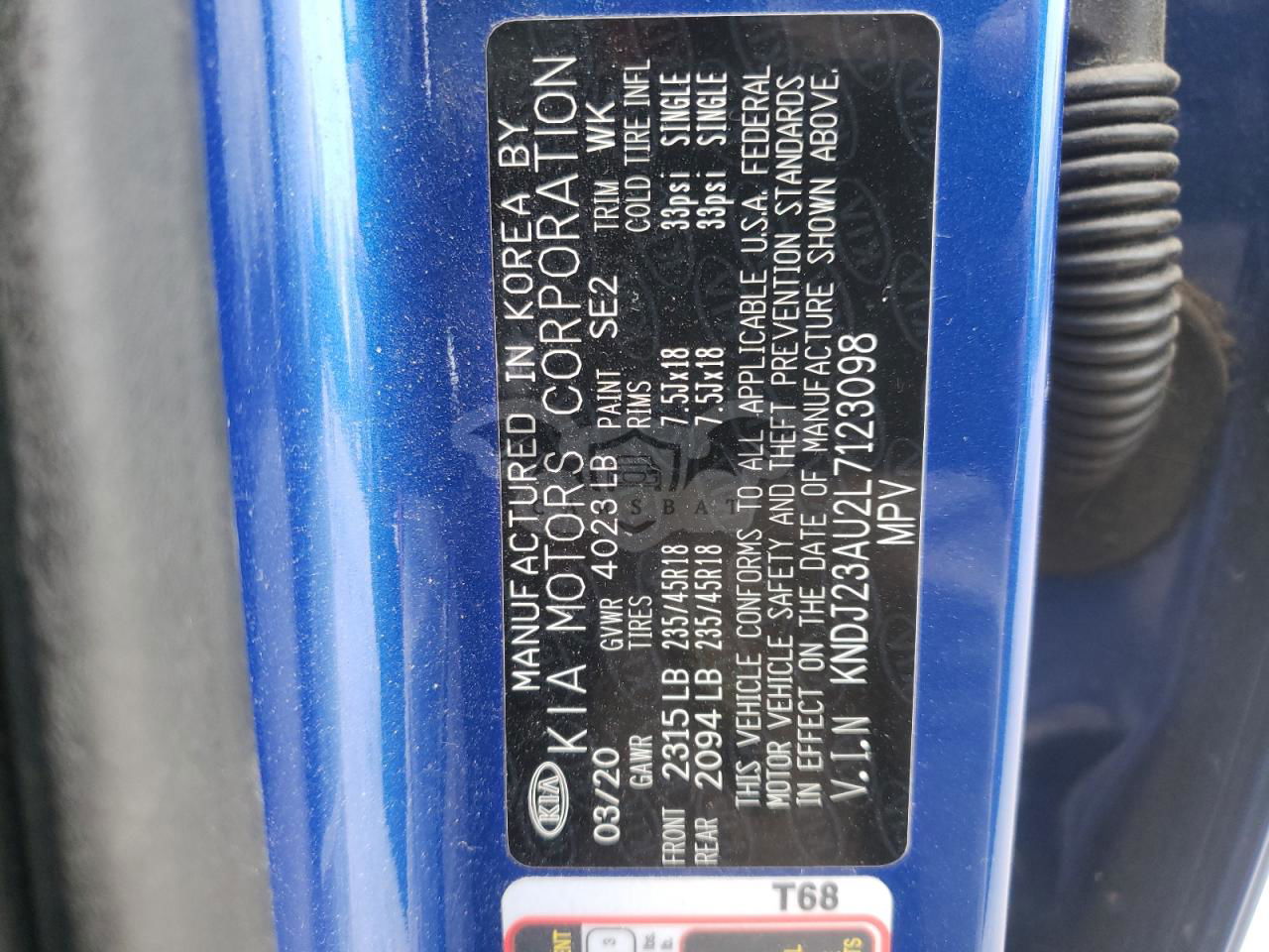 • VIN: KNDJ23AU2L7123098
