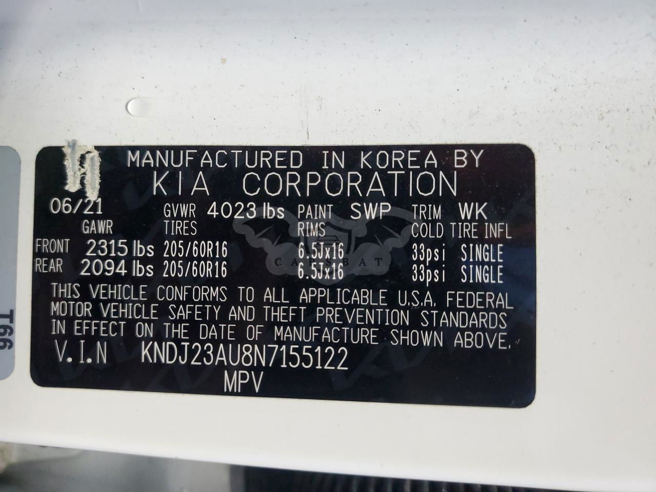 • VIN: KNDJ23AU8N7155122