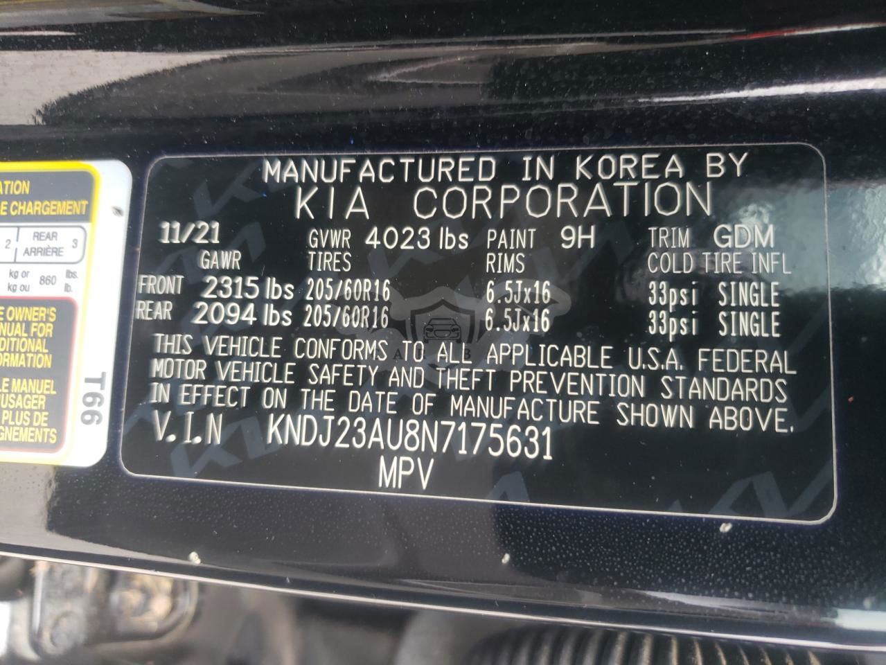 • VIN: KNDJ23AU8N7175631