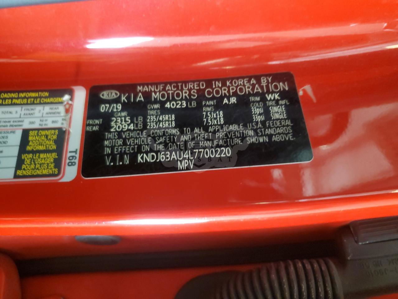 • VIN: KNDJ63AU4L7700220