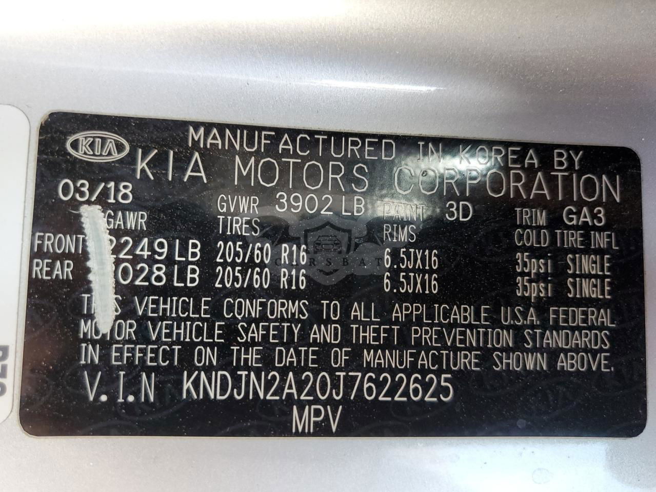 • VIN: KNDJN2A20J7622625