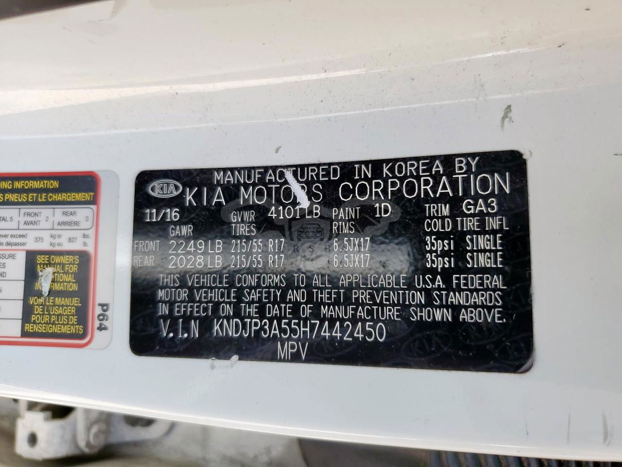 • VIN: KNDJP3A55H7442450