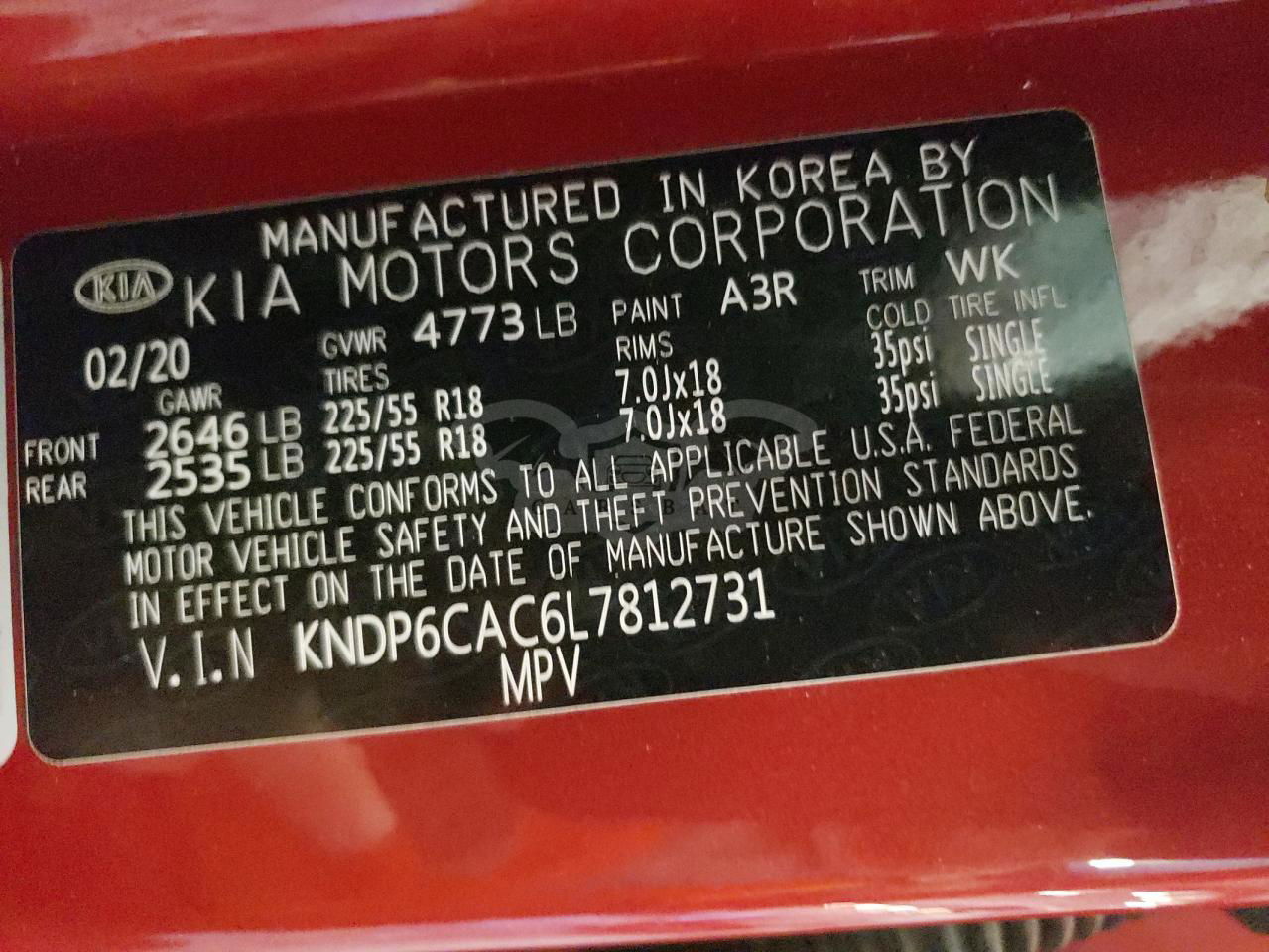 • VIN: KNDP6CAC6L7812731