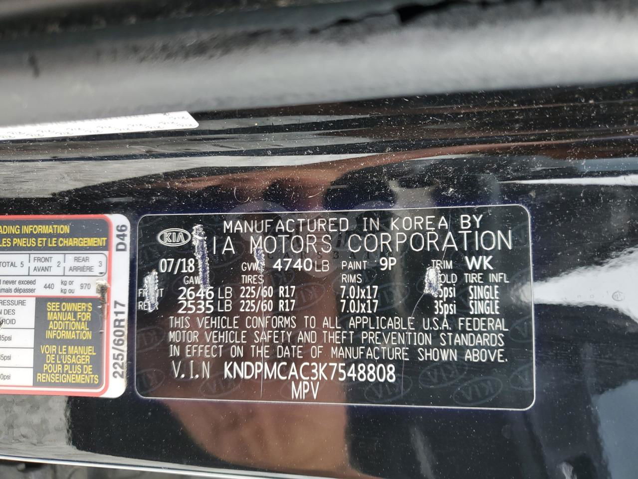 • VIN: KNDPMCAC3K7548808