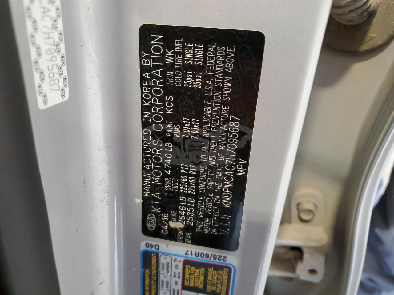• VIN: KNDPMCAC7H7095687