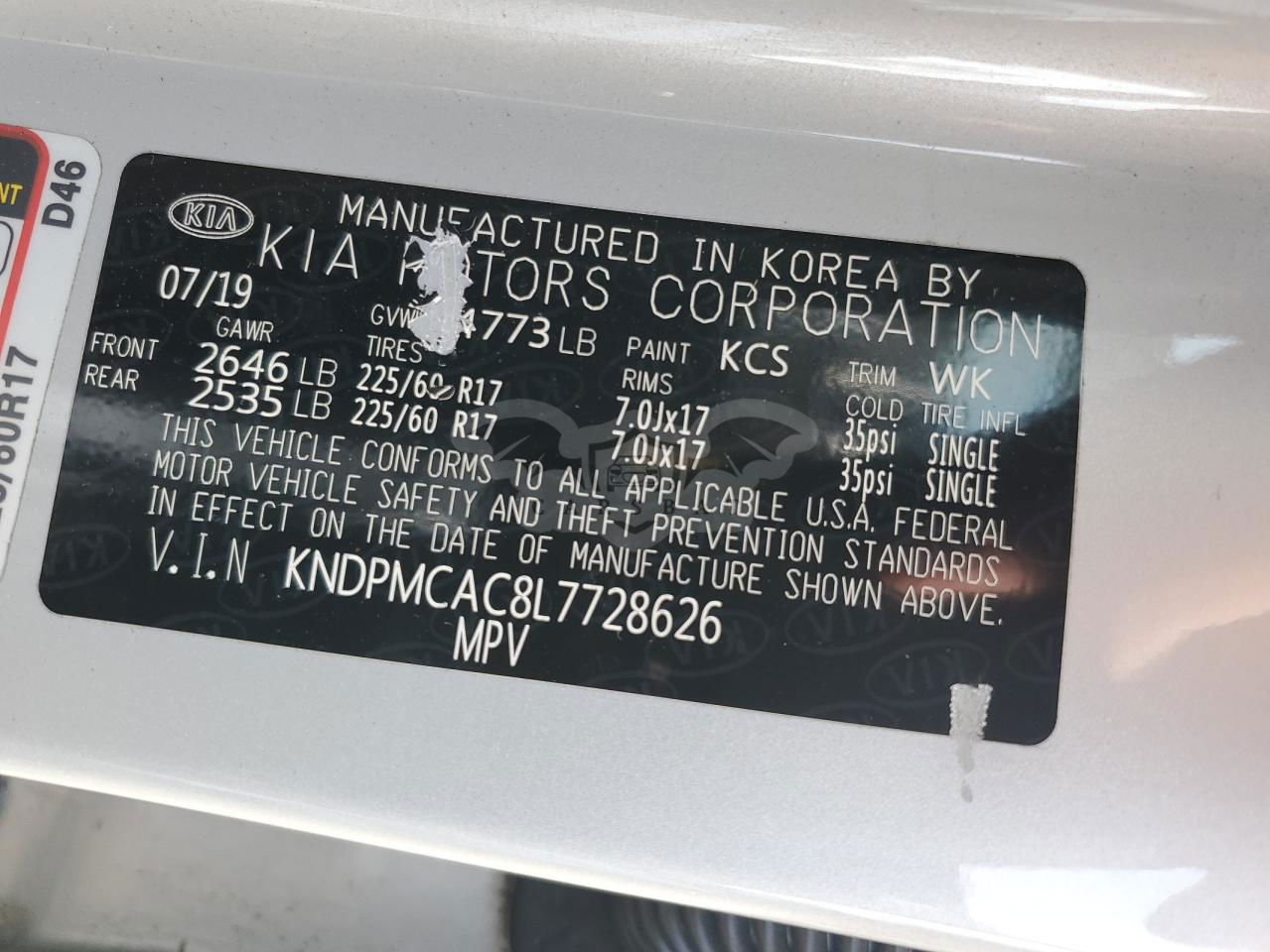 • VIN: KNDPMCAC8L7728626