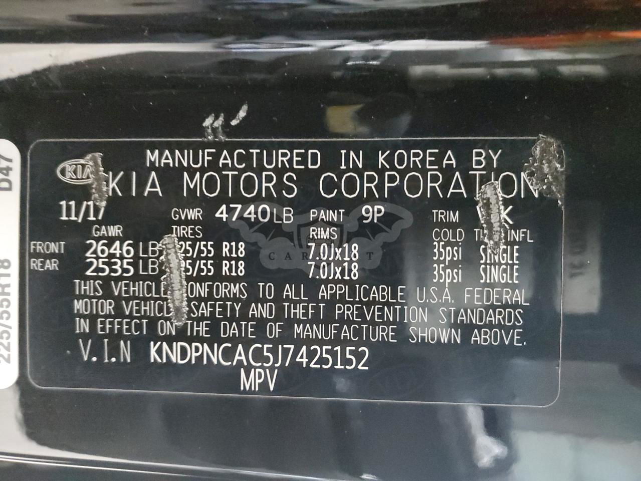 • VIN: KNDPNCAC5J7425152