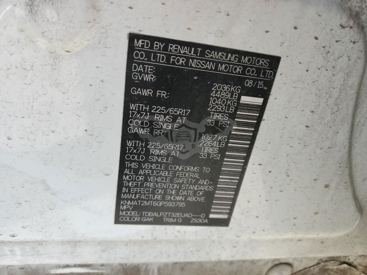 • VIN: KNMAT2MT6GP593795
