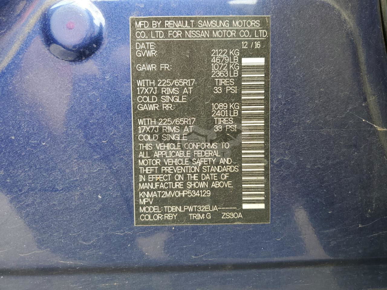 • VIN: KNMAT2MV0HP534129