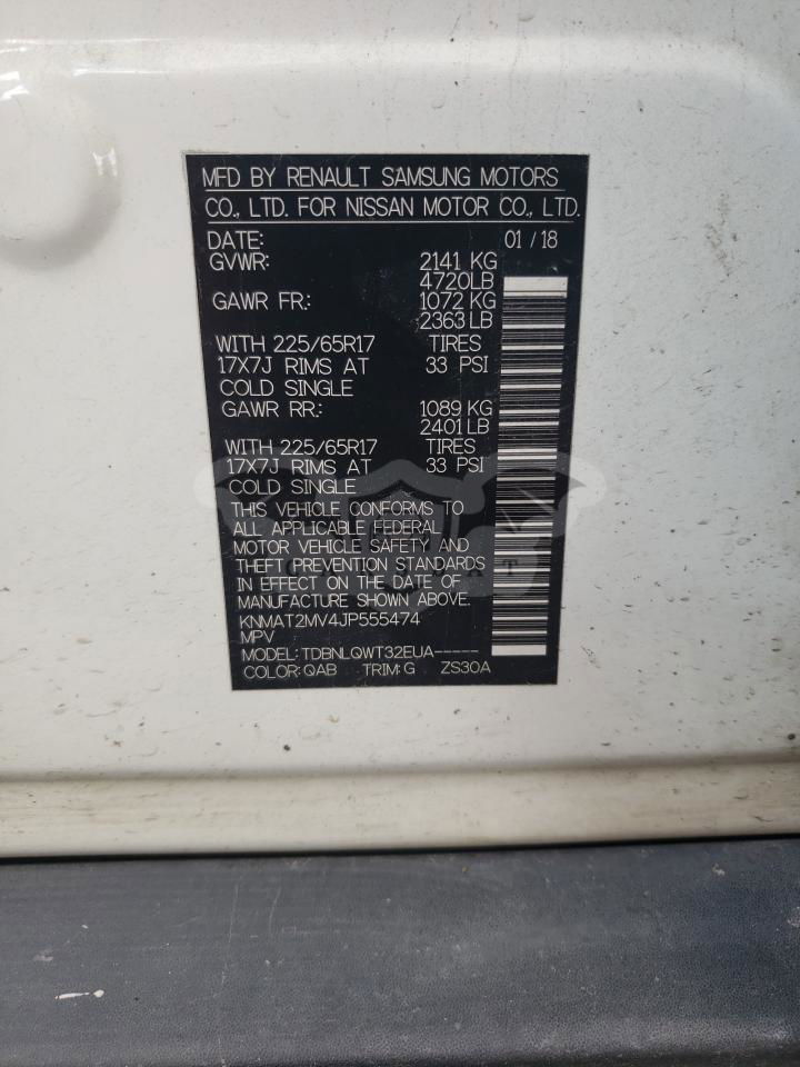 Biały Nissan Rogue S 2.5L 4 2018 roku | Benzyna
