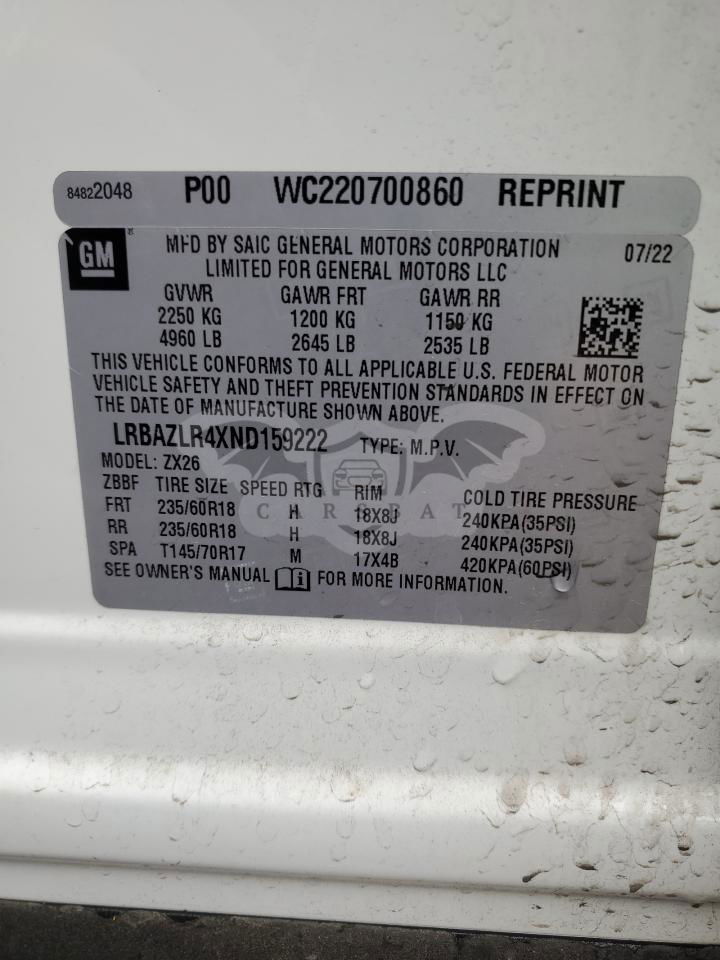• VIN: LRBAZLR4XND159222