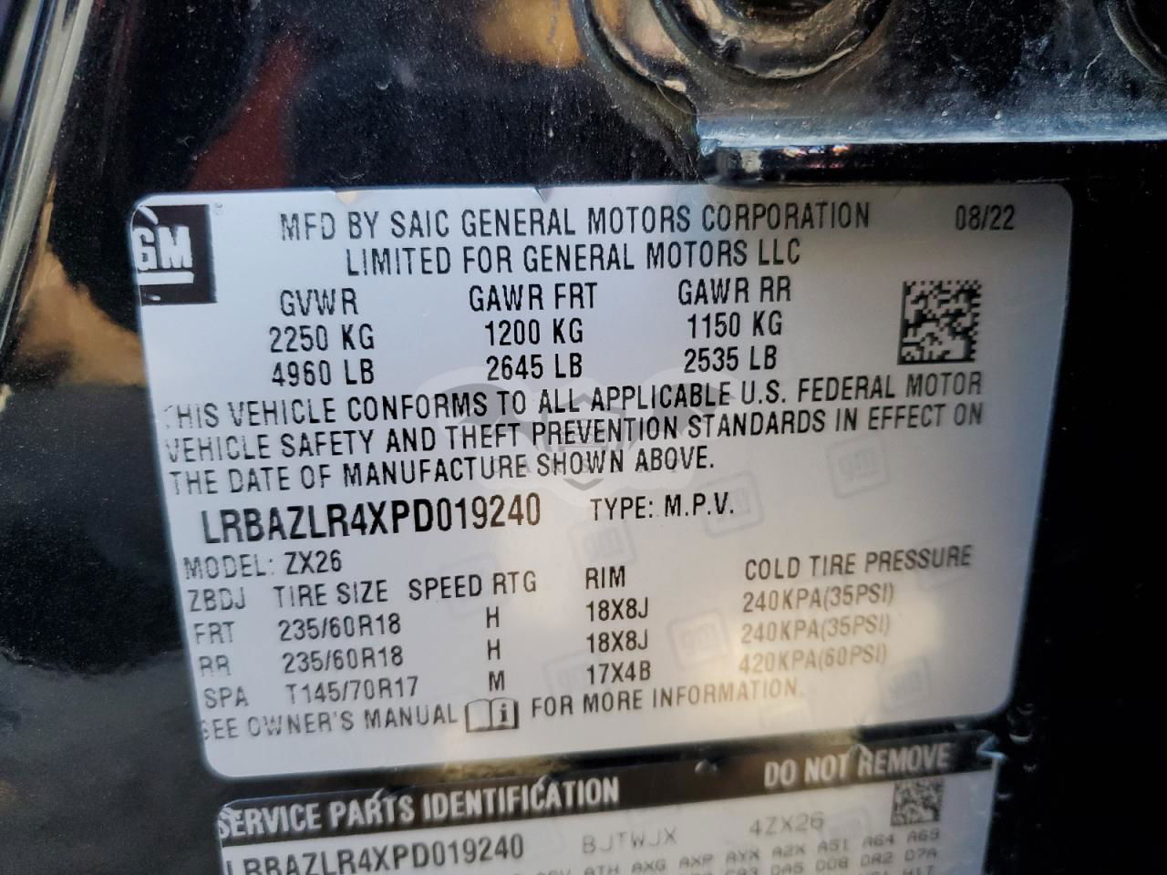 • VIN: LRBAZLR4XPD019240