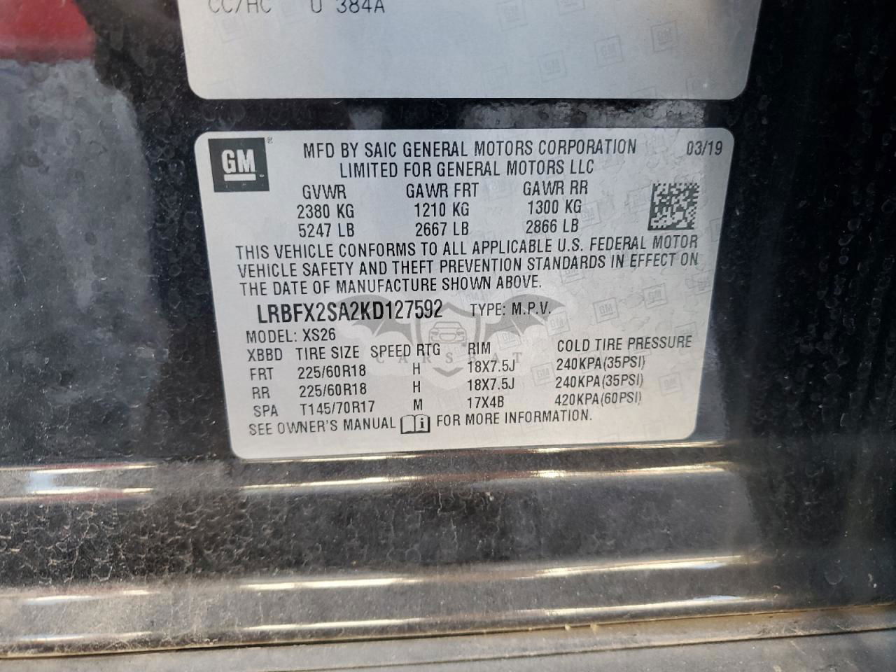 • VIN: LRBFX2SA2KD127592