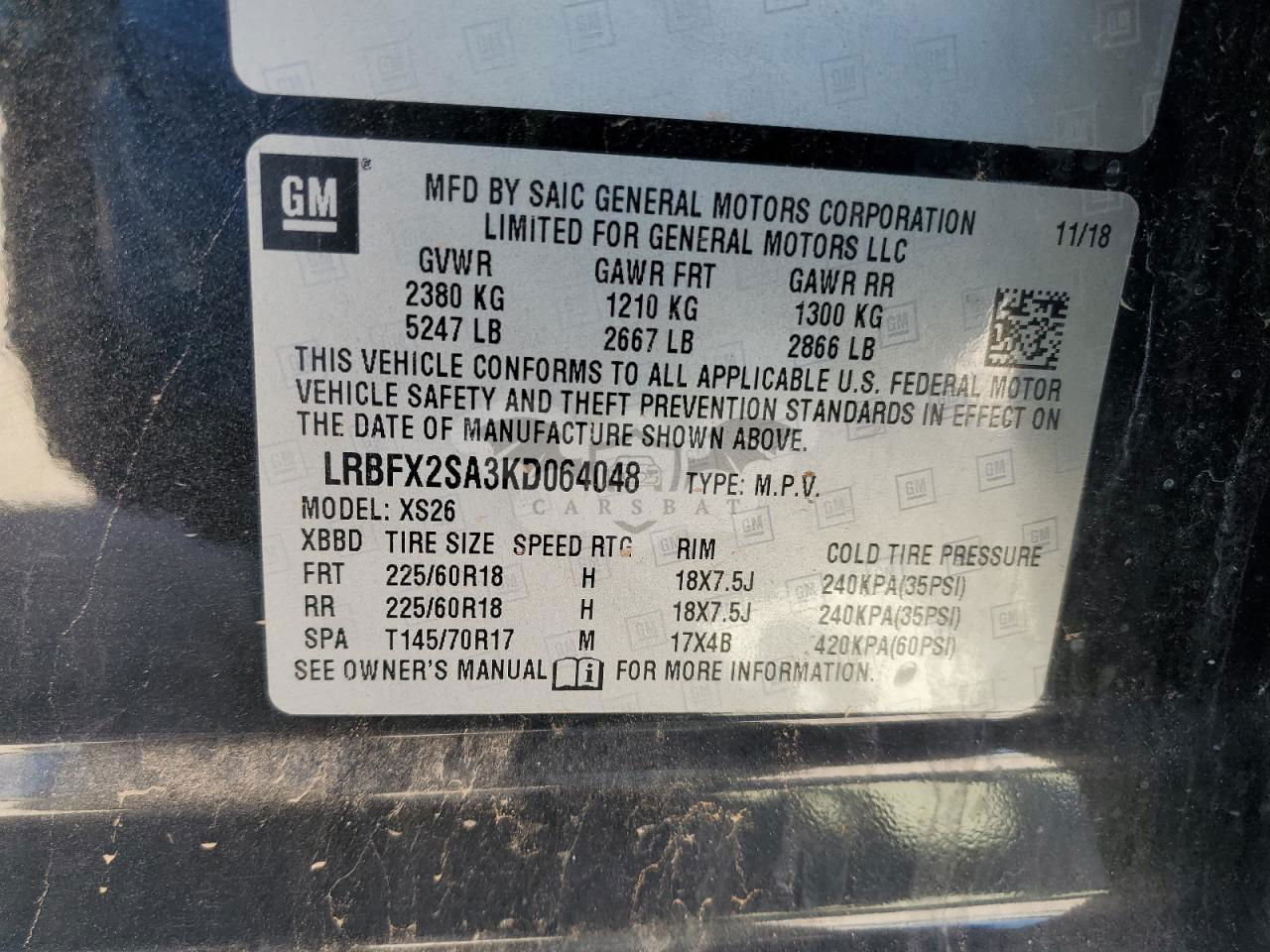 • VIN: LRBFX2SA3KD064048