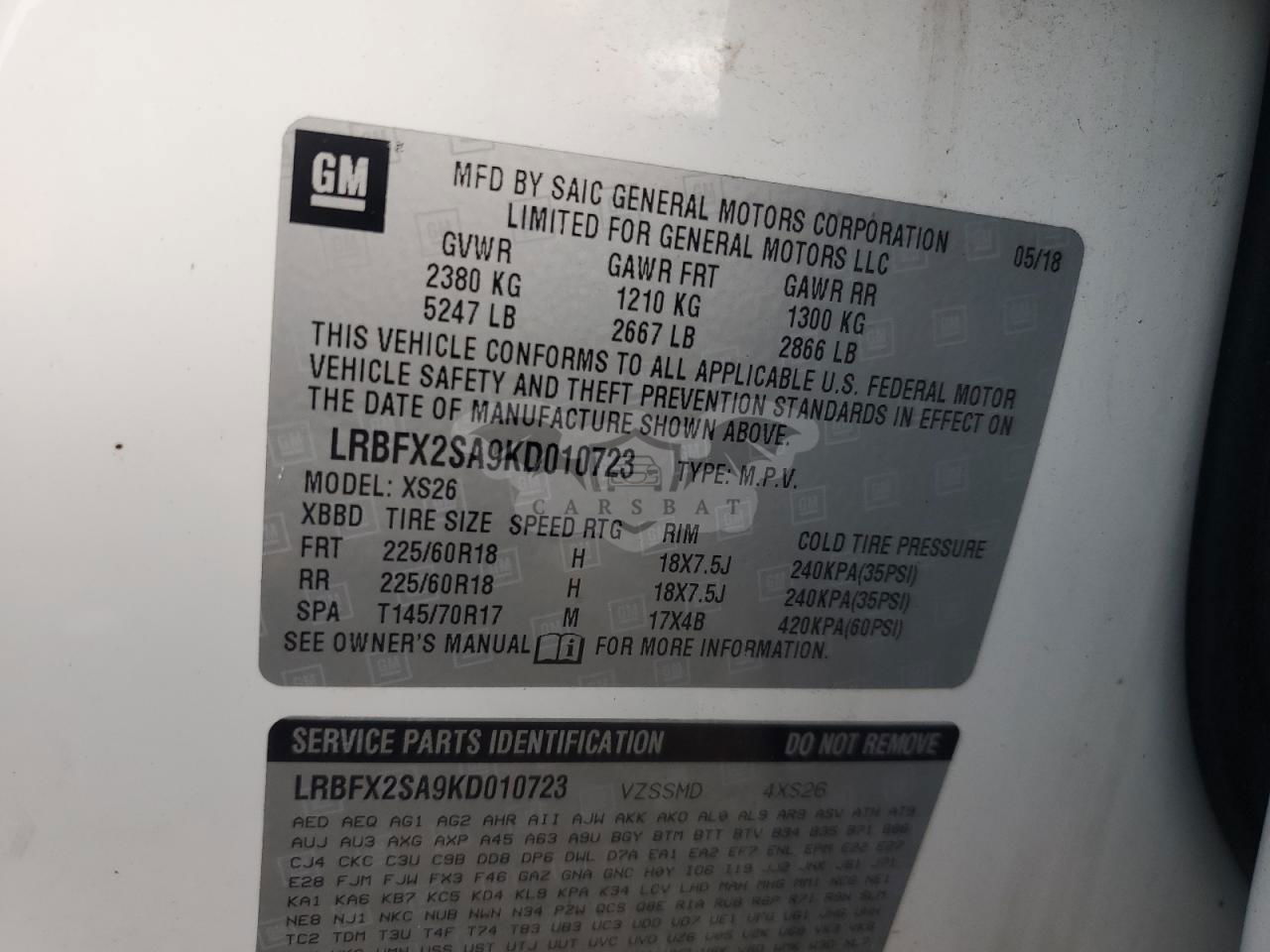 • VIN: LRBFX2SA9KD010723
