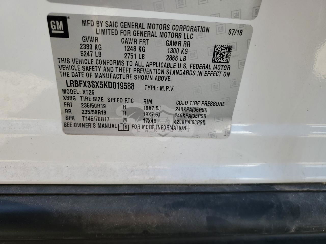 • VIN: LRBFX3SX5KD019588