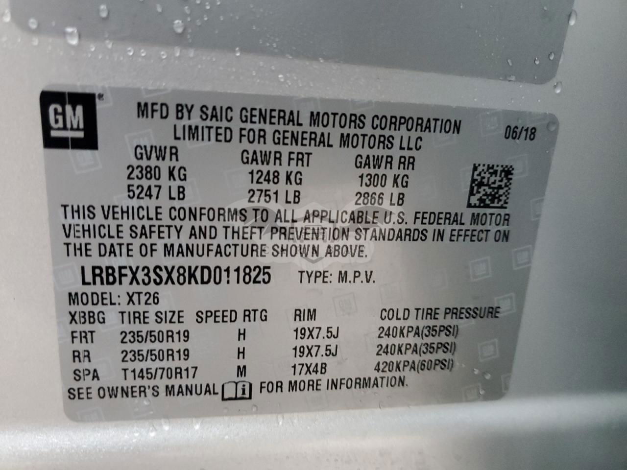 • VIN: LRBFX3SX8KD011825