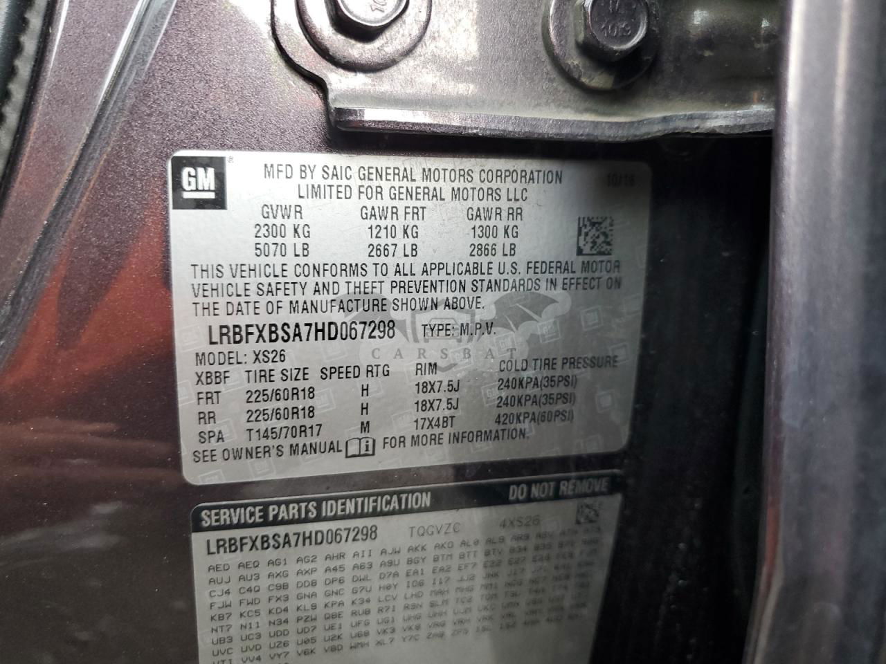 • VIN: LRBFXBSA7HD067298
