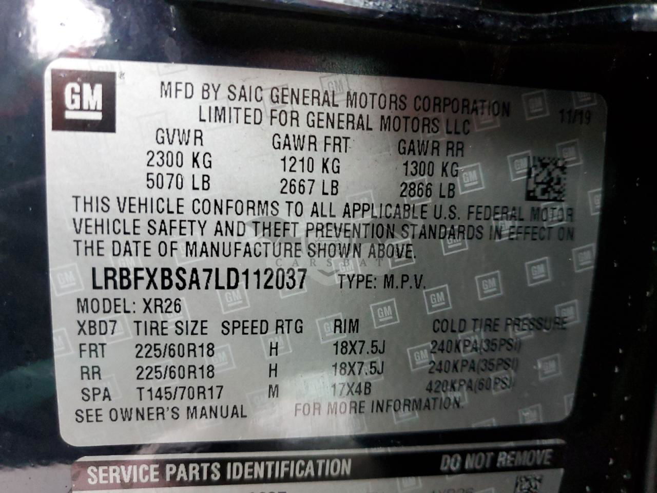 • VIN: LRBFXBSA7LD112037