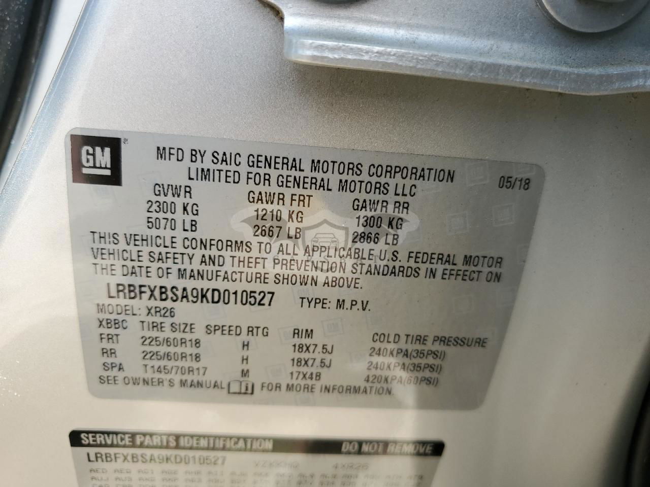 • VIN: LRBFXBSA9KD010527