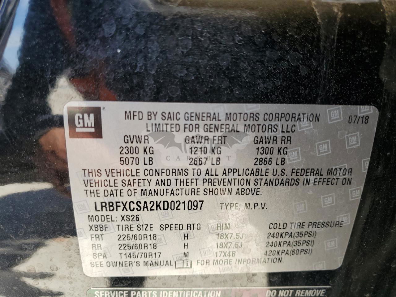 • VIN: LRBFXCSA2KD021097