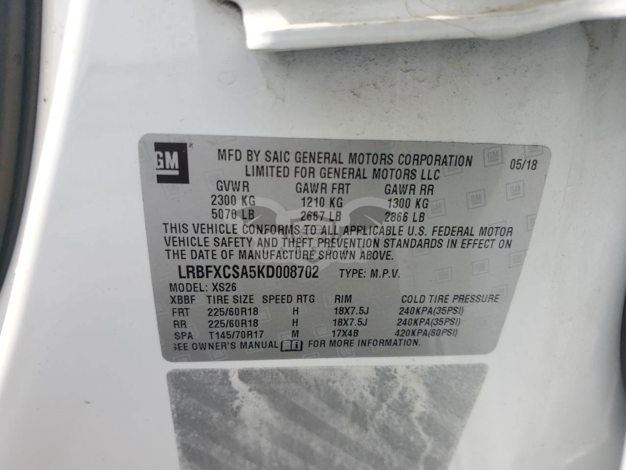• VIN: LRBFXCSA5KD008702