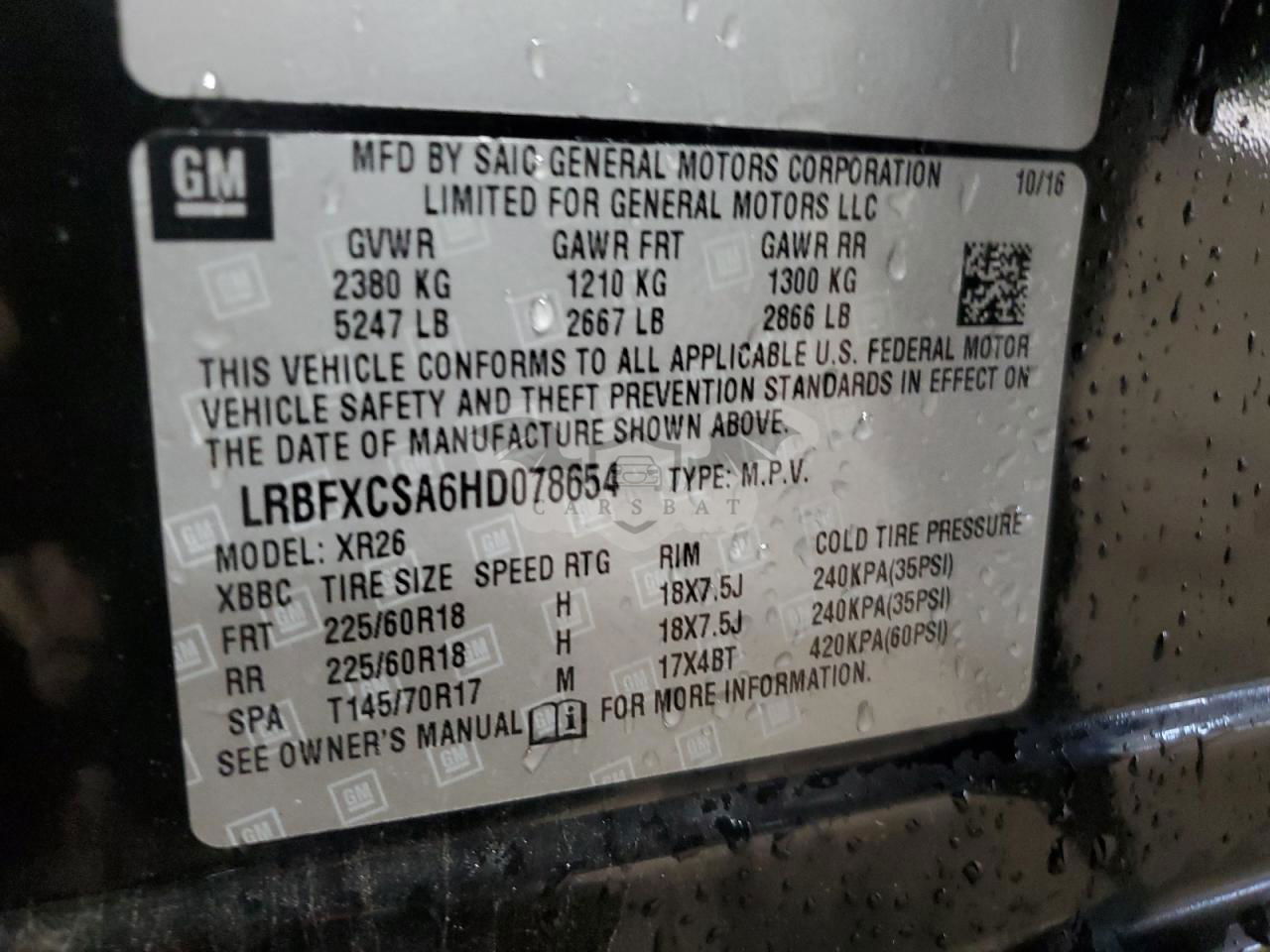 • VIN: LRBFXCSA6HD078654