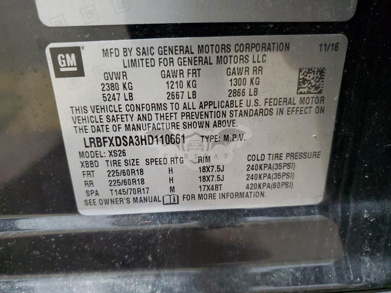 • VIN: LRBFXDSA3HD110661
