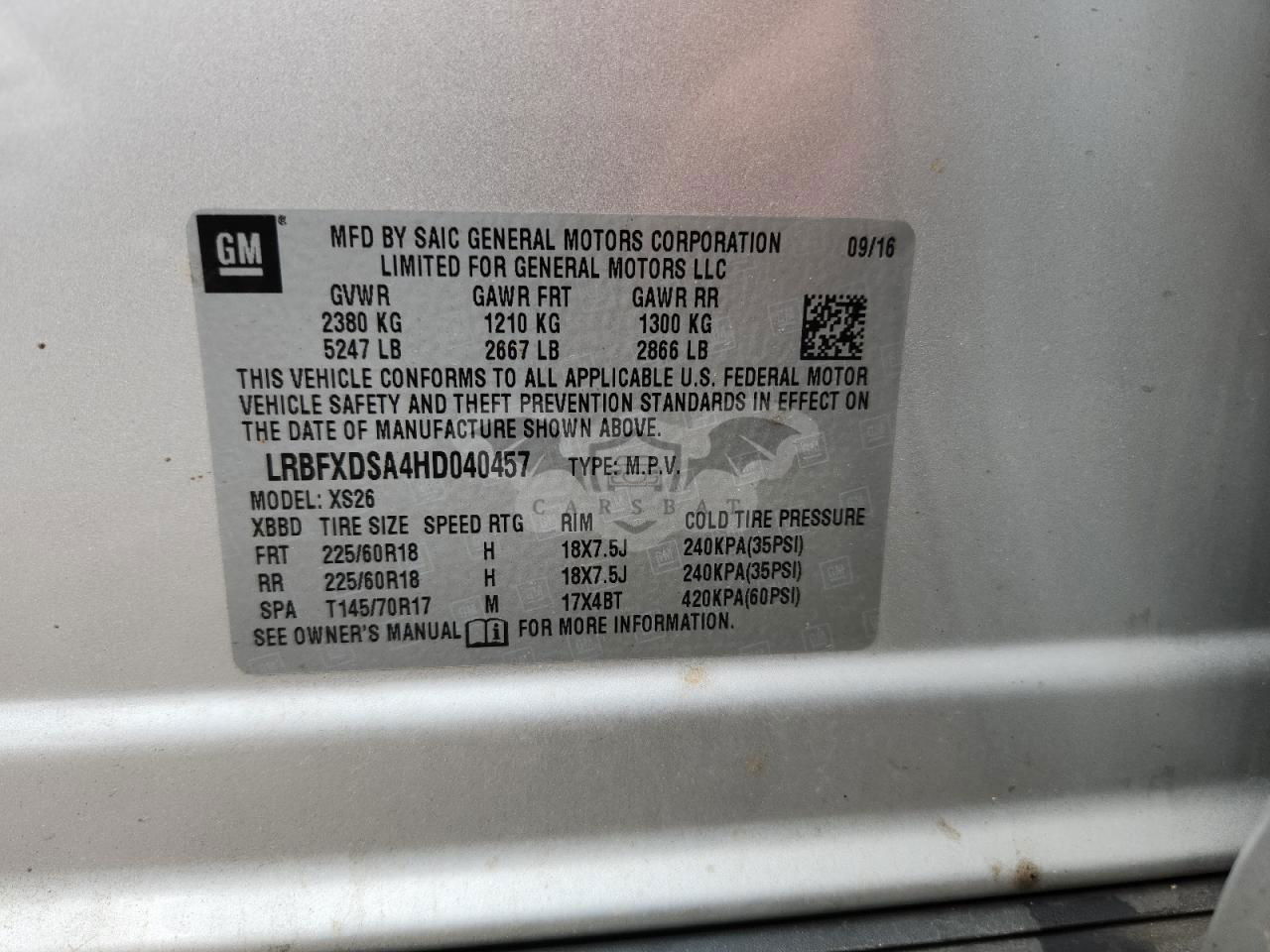 • VIN: LRBFXDSA4HD040457