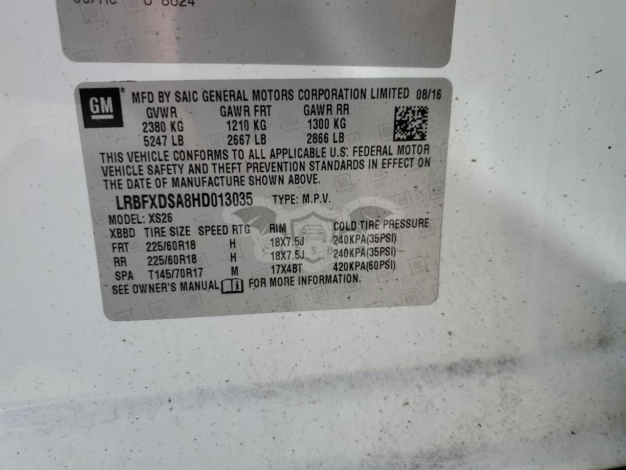 • VIN: LRBFXDSA8HD013035