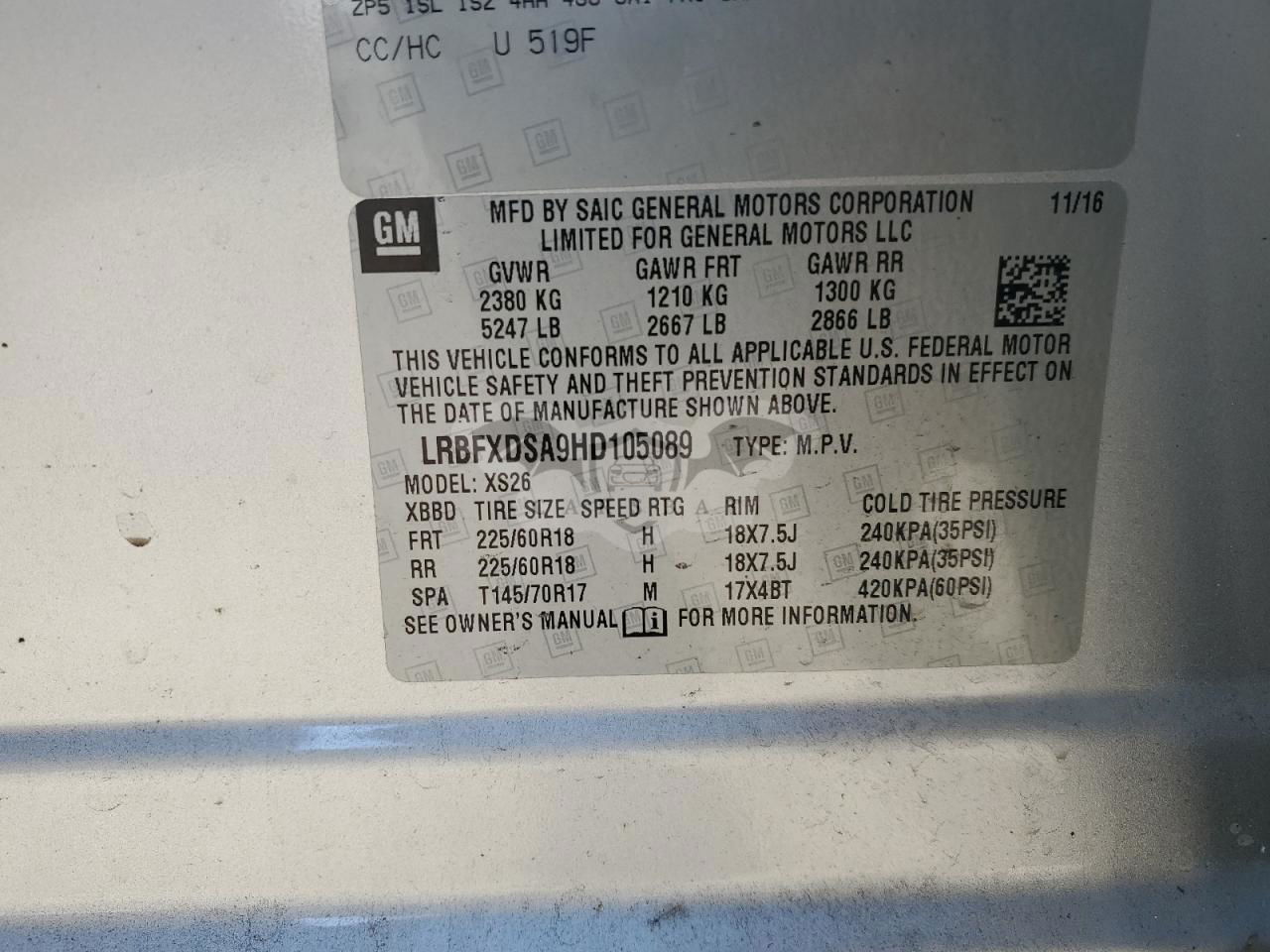 • VIN: LRBFXDSA9HD105089