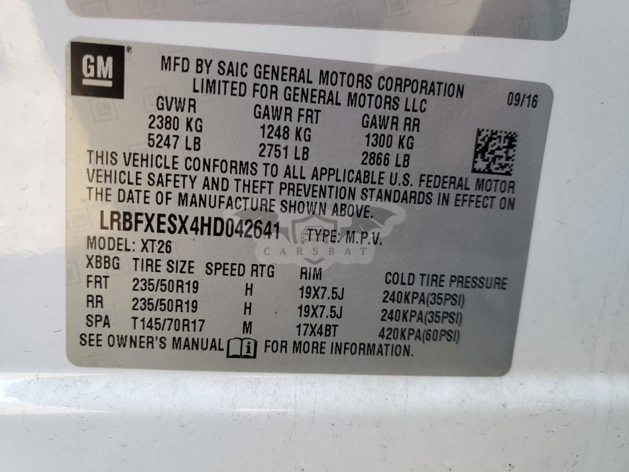 • VIN: LRBFXESX4HD042641