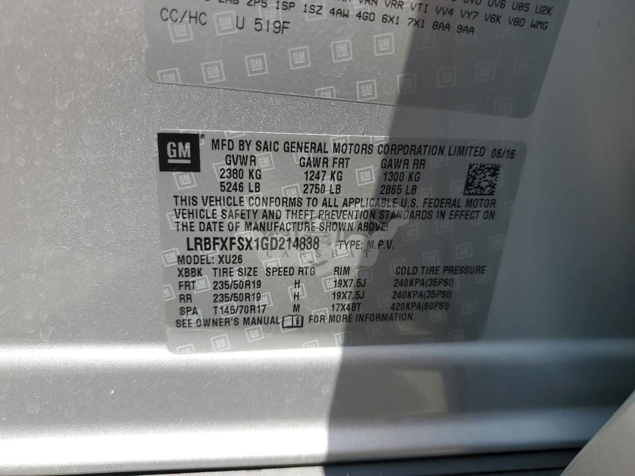 • VIN: LRBFXFSX1GD214838