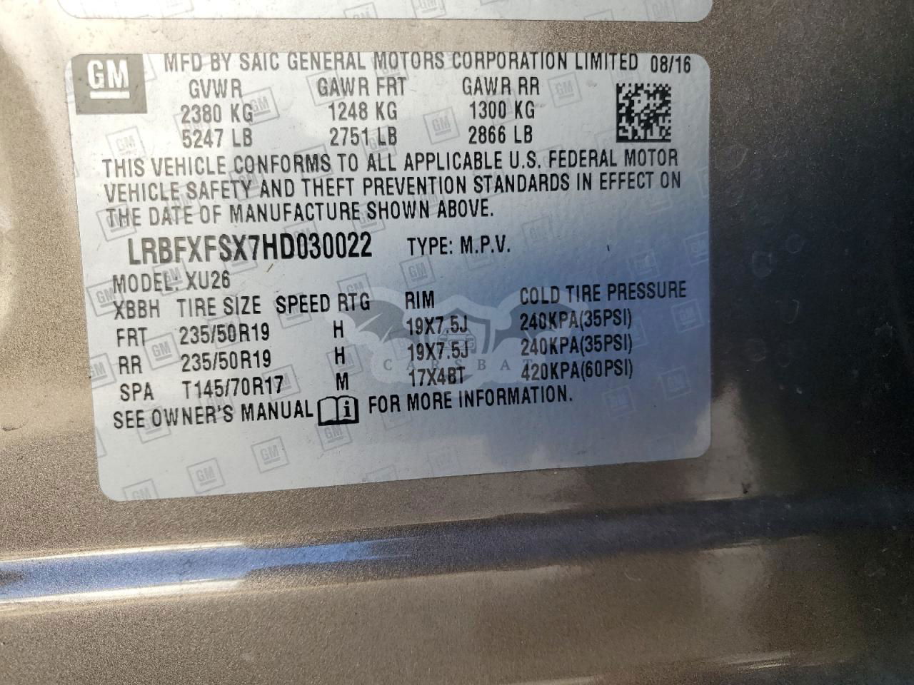 • VIN: LRBFXFSX7HD030022