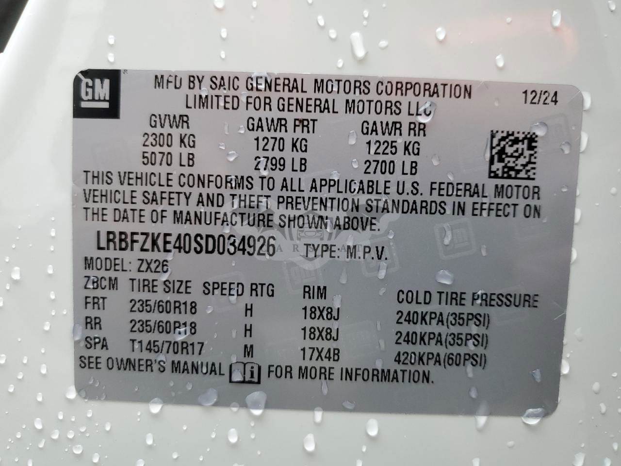 • VIN: LRBFZKE40SD034926